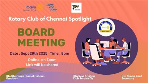 The Board Meeting of the Rotary Club of Chennai Spotlight was held . . .
